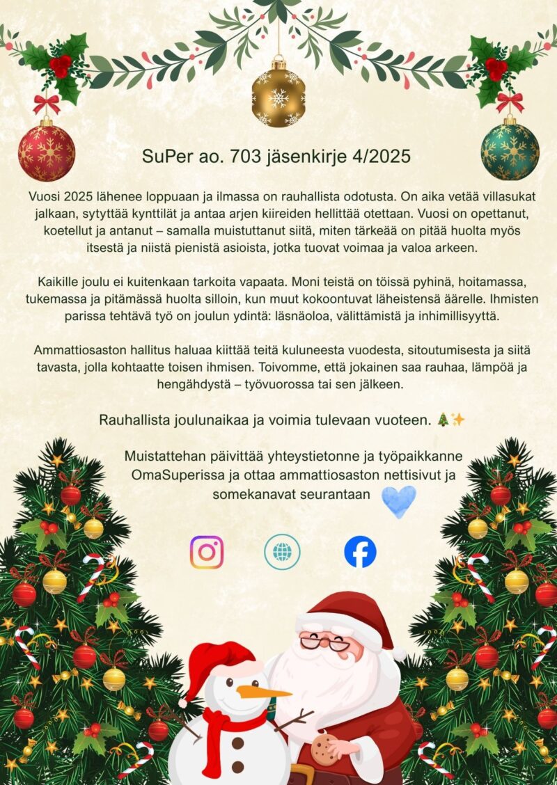 Ammattiosastosi Ammattiosastosi Ajankohtaista Jäsenkirje 4/2025Jäsenkirje 3/2025Ammattiosaston jäsenkirje 3/2025